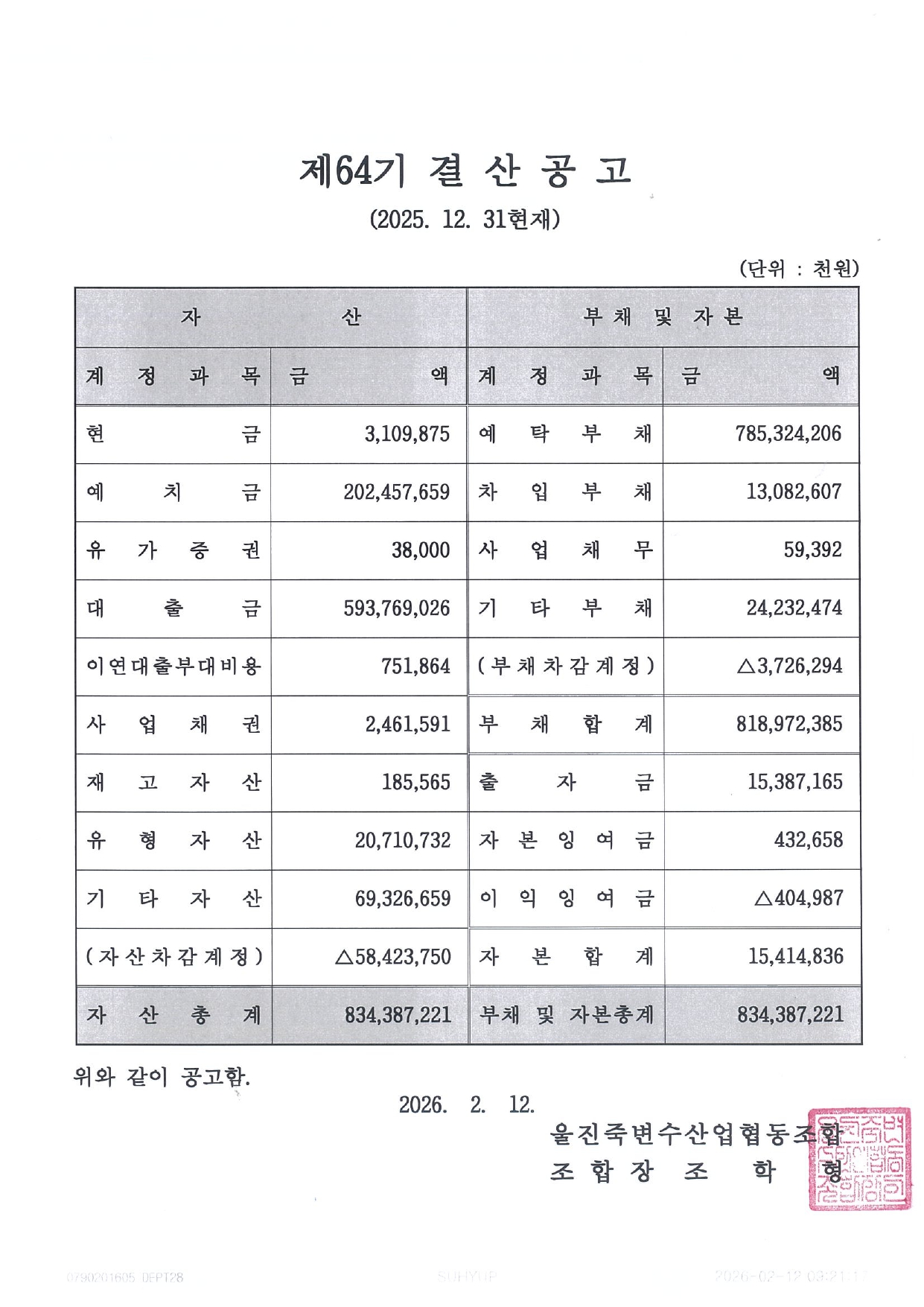 Á¦64±â °á»ê°ø°í