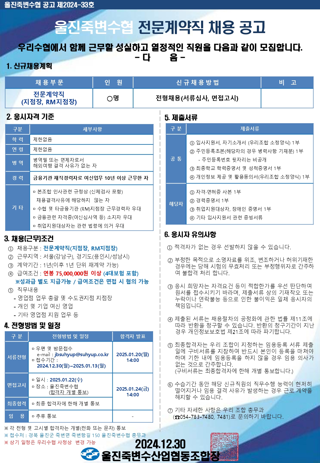 2024³â Àü¹®°è¾àÁ÷(ÁöÁ¡Àå, RMÁöÁ¡Àå) ä¿ë °ø°í