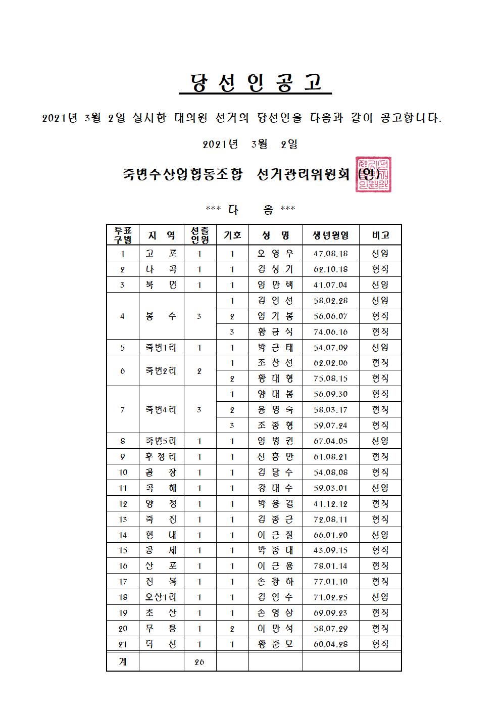 2021³â Á׺¯¼öÇù ´ëÀÇ¿ø ´ç¼±ÀÎ °ø°í